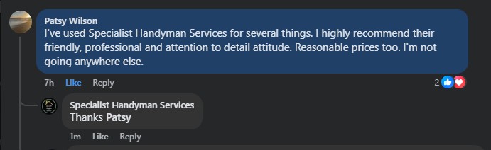 ”John has completed various jobs around the house for me. He is always polite, friendly and reliable!”
